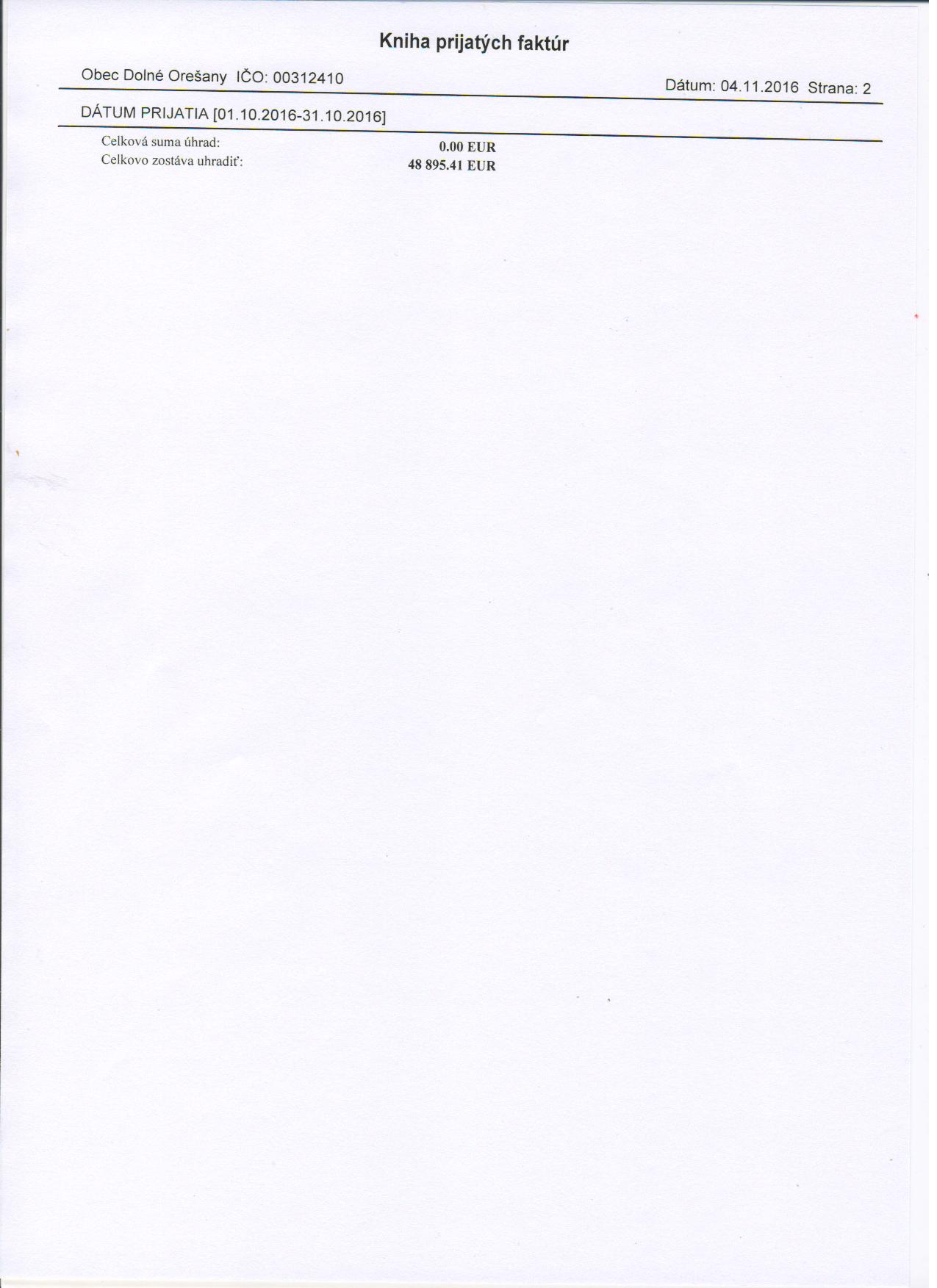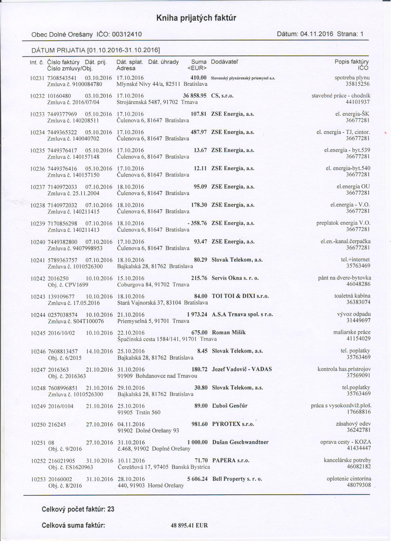 Zoznam faktúr za október 2016
