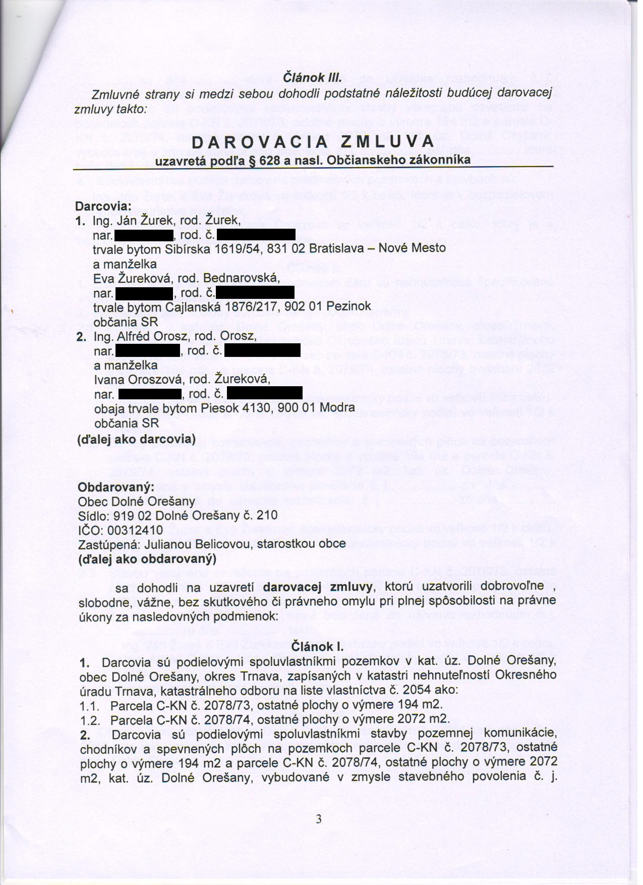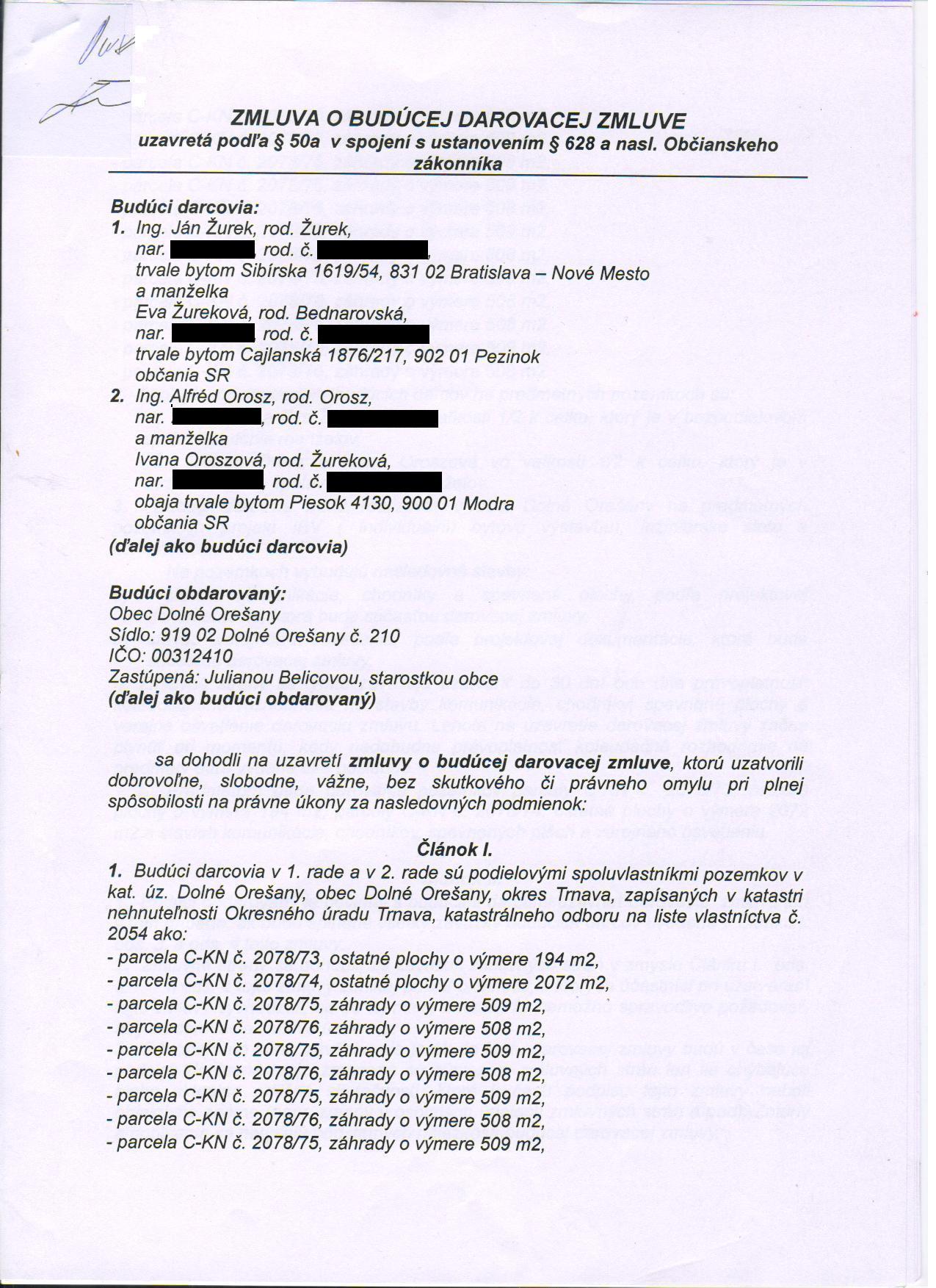 Detail zmluvy Zmluva o budúcej darovacej zmluve