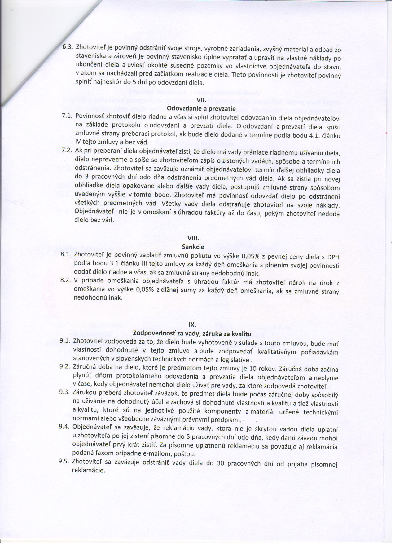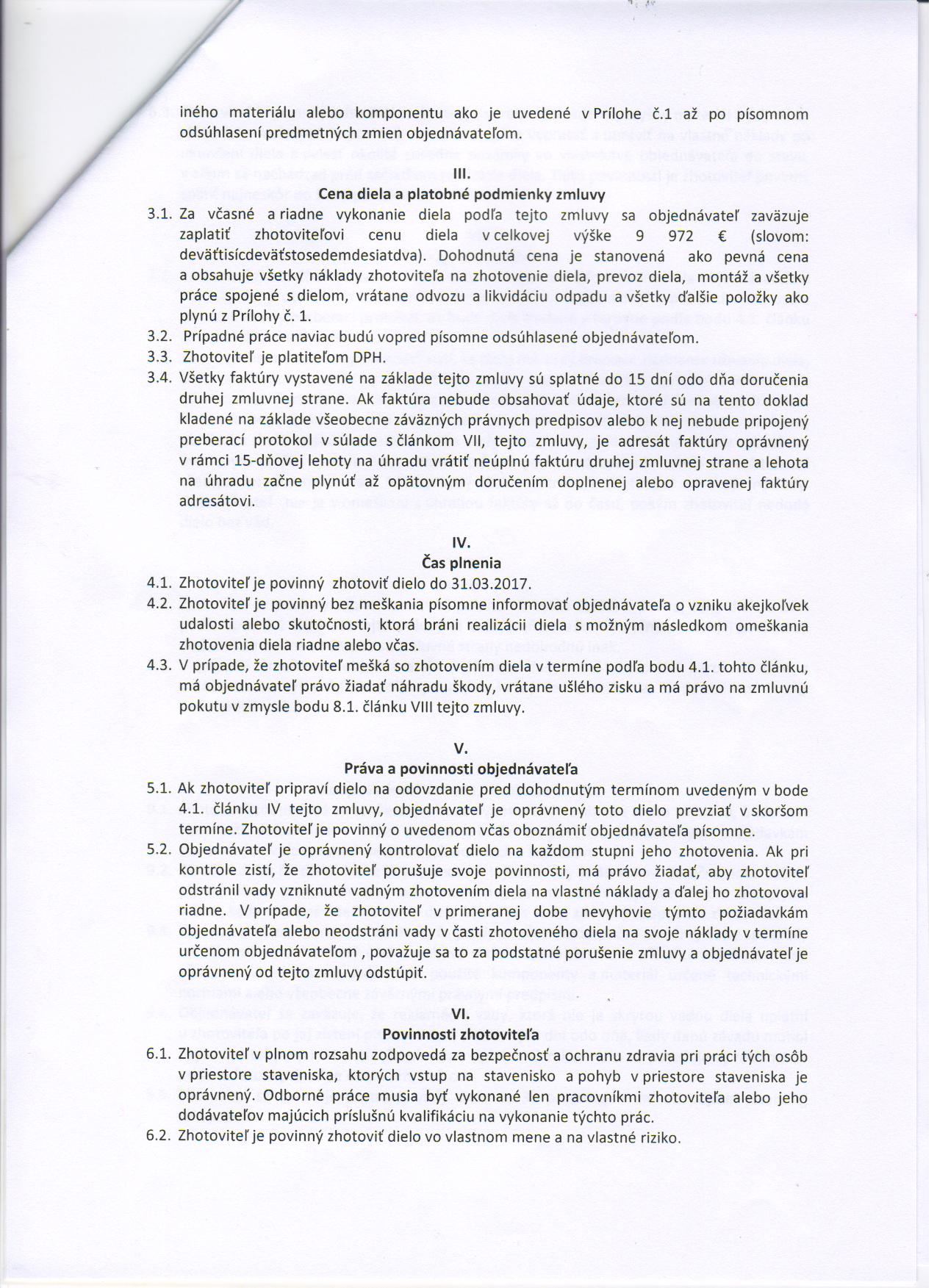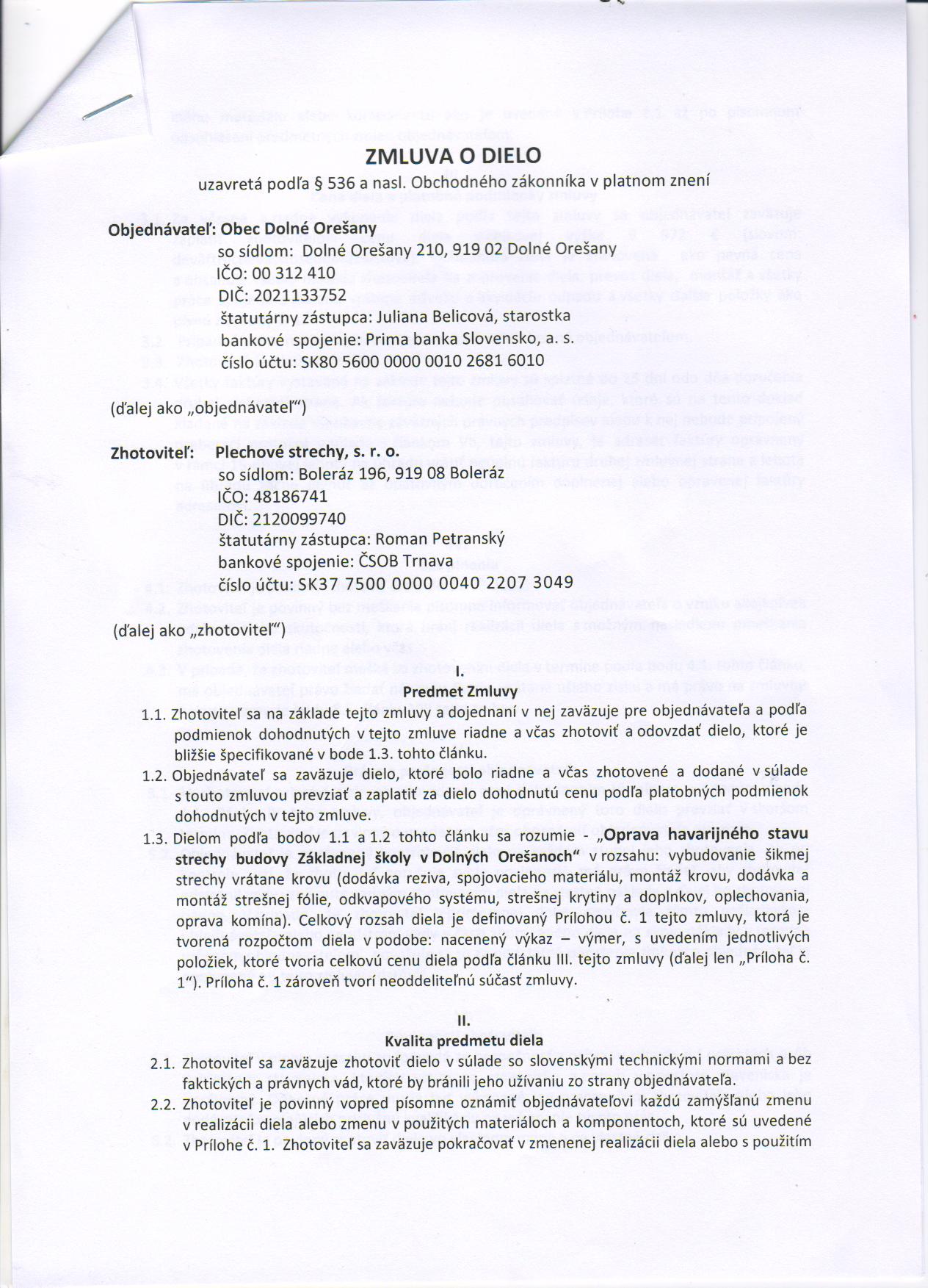 Zmluva o dielo - Oprava havarijného stavu strechy budovy ZŠ v Dolných Orešanoch