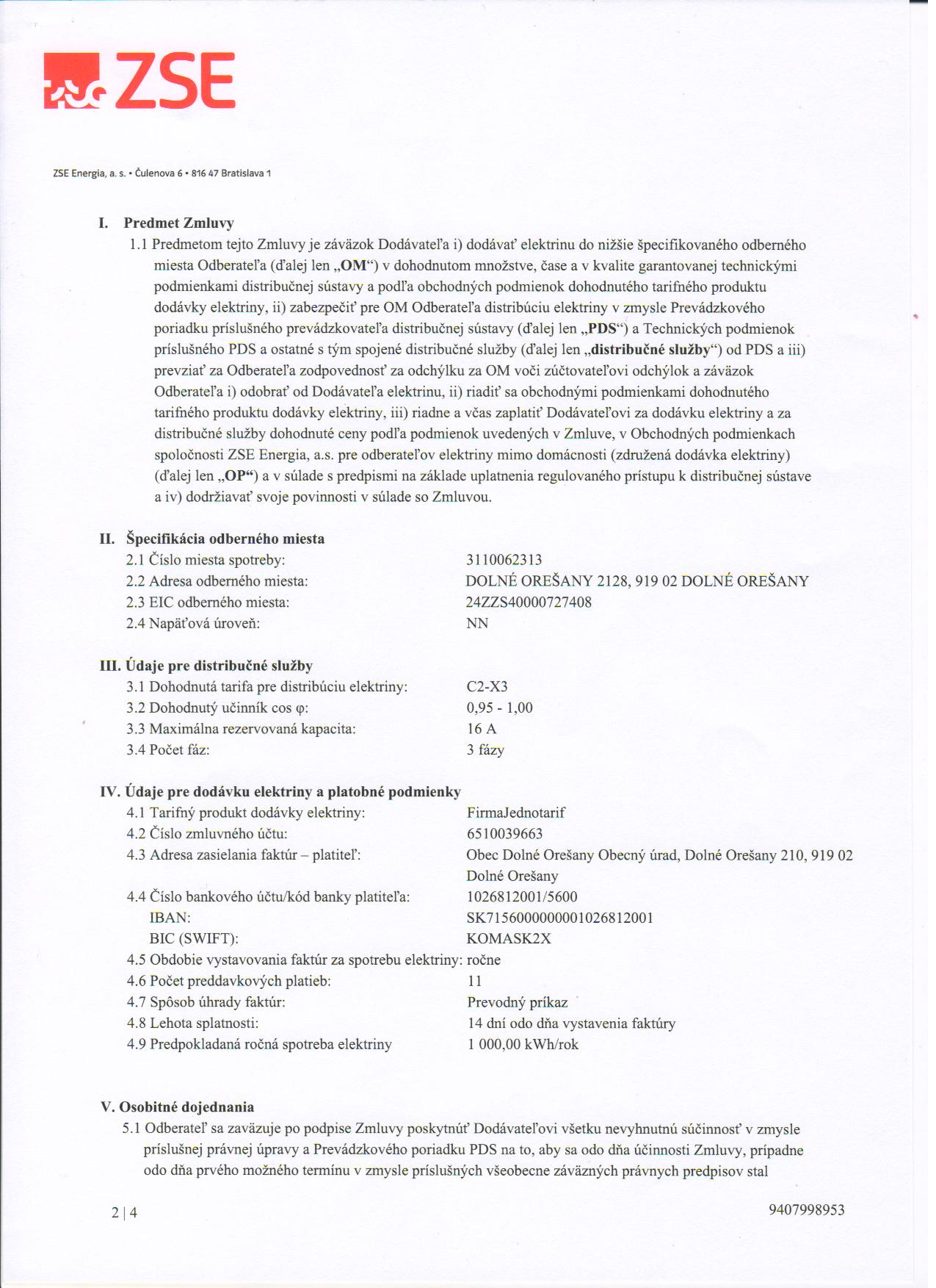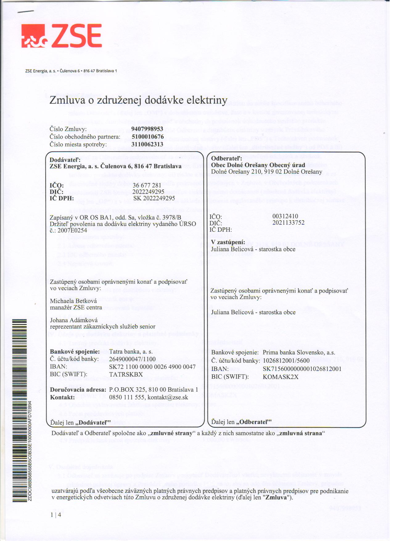 Detail zmluvy Zmluva o združenej dodávke elektriny
